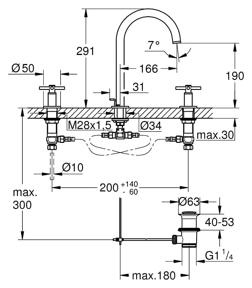 Thông số kỹ thuật vòi chậu nóng lạnh Đức Grohe 20008DA3:
